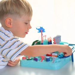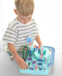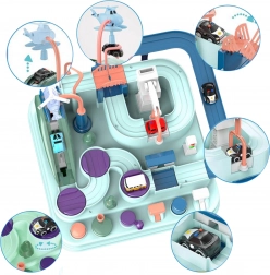 Datorită designului ingenios și elementelor variate, jucăria oferă momente de neuitat pline de emoție și provocări. Un instrument ideal pentru dezvoltarea imaginației și a abilităților motorii fine, care oferă multă distracție în același timp. Pista auto nu oferă doar posibilități de condus, ci și elemente interactive, controlate prin butoane și cheițe. Acest joc palpitant necesită concentrare și îndemânare.
