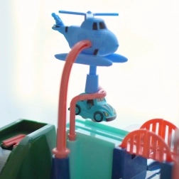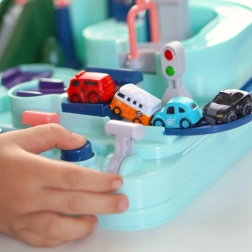 În set se află trei mașinuțe mici, care pot explora liber pista conform imaginației micului jucător. Vehiculele îmbogățesc jocul sau permit copiilor să concureze pe pistă. Drumul prin pistă poate părea ușor, dar numeroasele elemente precum cutiile de viteze sau podurile mobile asigură că traseul devine plin de adrenalină.