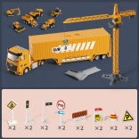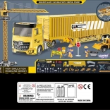 - camion mare cu platformă rabatabilă, macara (macara), betonieră, cilindru compactor, stivuitor, excavator pe șenile, încărcător frontal, autobasculantă, 8× con, 4× butoi, 8× indicator de avertizare, 6× barieră de avertizare, barieră–gard, 8× bandă (alb‑roșu), roabă, lopată, 2× figurină constructori