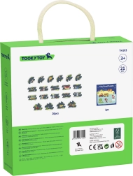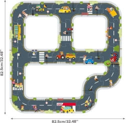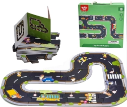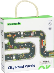 Construiți-vă propriul oraș și circuit de curse cu setul de puzzle TOOKY TOY. Pachetul conține 21 de piese (puzzle rutier și cărțulie cu propuneri de trasee), din care creați diverse variante de drumuri cu intersecții, sensuri giratorii și elemente de trafic. După asamblare rezultă o suprafață mare de joacă de până la 82,5 × 82,5 cm, care dezvoltă motricitatea fină, creativitatea și imaginația copiilor de la 3 ani.