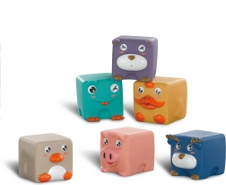 WOOPIE cuburi senzoriale sunt proiectate să sprijine dezvoltarea copilului de la 12 luni. Fiecare cub are forme reliefate cu motive de animale și este fabricat din material de înaltă calitate, care este moale și plăcut la atingere, emițând sunete la strângere.