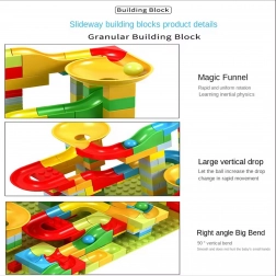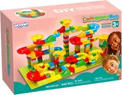 Acest set creativ WOOPIE îi transformă pe copii în adevărați arhitecți. Din diverse piese, vor construi trasee unice pline de curbe, coborâri și obstacole, datorită cărora bilele prind viteză, iar fiecare cursă este diferită. 340 de piese, inclusiv 2 baze mari de 16 × 16 cm și un instrument practic pentru desprinderea blocurilor, asigură o construcție solidă și o asamblare comodă.