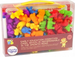 Set educațional Animale de la marca WOOPIE oferă un instrument simplu și eficient pentru învățare și distracție. Jocul constă în sarcini matematice folosind cărți cu instrucțiuni cu ajutorul figurinelor și markerelor. Jocul susține învățarea numărării și dezvoltarea recunoașterii culorilor prin distracție, ceea ce reprezintă o alternativă excelentă la învățarea tradițională!