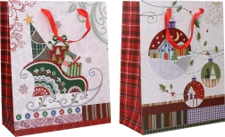 Această pungă cadou din hârtie, de calitate, cu motiv de Crăciun, ușurează împachetarea cadourilor și le conferă un aspect festiv. Datorită dimensiunilor 26 × 32 × 12 cm, este potrivită pentru cărți, seturi cosmetice, lumânări sau cutii mai mici. Este suficient să introduceți cadoul și aveți un ambalaj elegant, gata pe loc.