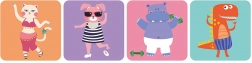Alege pisica, hipopotamul, iepurele sau dinozaurul și îmbracă eroul în ținuta corectă conform cardului de sarcină.