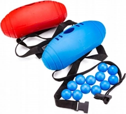 - Set complet pentru doi: cutie roșie și cutie albastră cu centuri + 24 de mingi din plastic (12 roșii, 12 albastre).