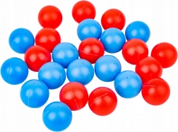 Setul de 24 de mingi din plastic (12 roșii și 12 albastre) este ușor, durabil și ideal pentru jocuri repetate acasă sau la petreceri.