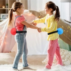 Setul conține echipament pentru 2 jucători și este potrivit pentru copii de la 3 ani. Datorită centurii reglabile și materialelor rezistente, jocul este sigur și confortabil. Sprijină mișcarea, echilibrul și coordonarea, aducând mult râs și spirit competitiv.