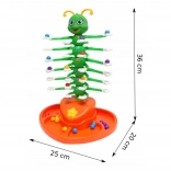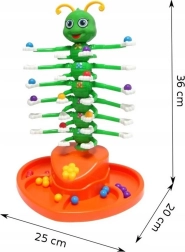 Jocul este ideal pentru seri în familie și întâlniri pentru copii. Efectele sonore intensifică experiența, iar principiul competitiv motivează la joc repetat. Trebuie doar să asamblezi omida pe bază, să împarți bilele și să începi – cine își plasează primul bilele câștigă!