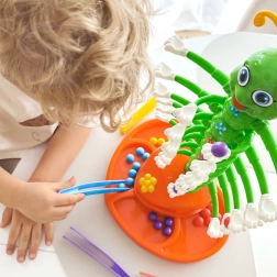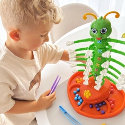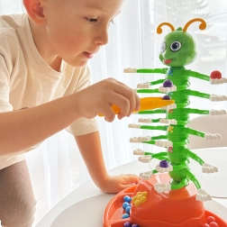 Copiii folosesc pensetele pentru a plasa cu precizie bilele pe mânuțele în mișcare ale omizii, dezvoltând în mod natural coordonarea mână–ochi și răbdarea.