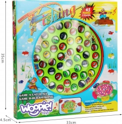 WOOPIE pescuit de peștișori este un joc interactiv pentru întreaga familie. Iazul rotativ și peștișorii care își deschid gura pun la încercare reflexele și răbdarea. În pachet găsiți 5 undițe, 45 de peștișori și coșulețe pentru capturi. Jocul dezvoltă motricitatea fină și coordonarea mână–ochi. Alimentare: 3× AA (nu sunt incluse).