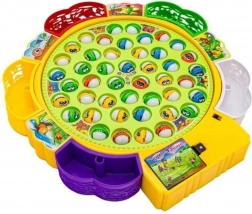 Planșă de joc (iaz rotativ), 5 undițe, 45 de peștișori, 5 coșulețe