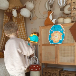 Transformă camera într-un teren de joacă distractiv cu ținta dino și pistolul care lansează mingi moi cu arici. Ținta colorată, cu punctaj marcat clar, îi motivează pe copii să obțină lovituri precise, iar construcția ușoară și ergonomică a pistolului asigură o prindere confortabilă chiar și pentru mâinile mici.
