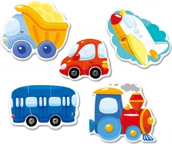 Oferiți copiilor dumneavoastră distracție cu aceste puzzle-uri adorabile cu imagini de mijloace de transport. Acest set conține 5 imagini diferite, fiecare formată din 2 până la 4 piese. Puzzle-urile sunt ideale pentru copii de la 3 ani, susțin concentrarea și gândirea logică.
