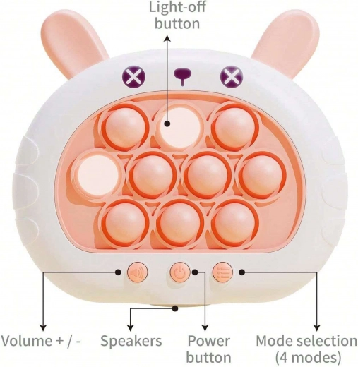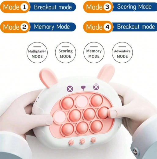 Jocul distractiv și interactiv POP IT Iepuraș aduce plăcere atât copiilor, cât și adulților. Dezvoltă mintea, abilitățile manuale, coordonarea ochi-mână și ajută la combaterea stresului. Această jucărie oferă patru moduri de joc diferite care țin pe toată lumea în suspans.