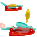 - Componente sigure și colorate: dinozaur din plastic, catapulte și săculeți moi.