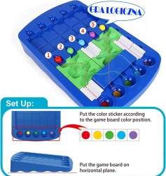 Jocul logic al mărcii WOOPIE este un cadou minunat pentru copilul dumneavoastră, oferindu-i posibilitatea de a petrece timp cu un joc educativ și distractiv. Regulile simple și jocul care stimulează mintea copiilor garantează ore întregi de distracție. Fiecare culoare a bilei trebuie să ajungă în gaura corespunzătoare, ceea ce nu este atât de simplu având 60 de provocări de rezolvat.