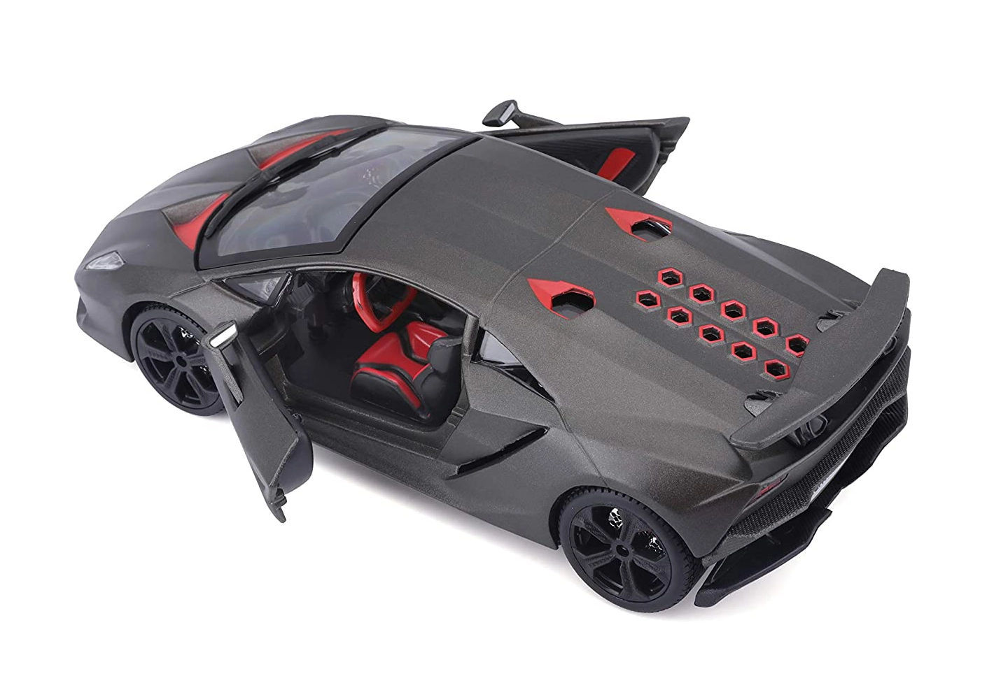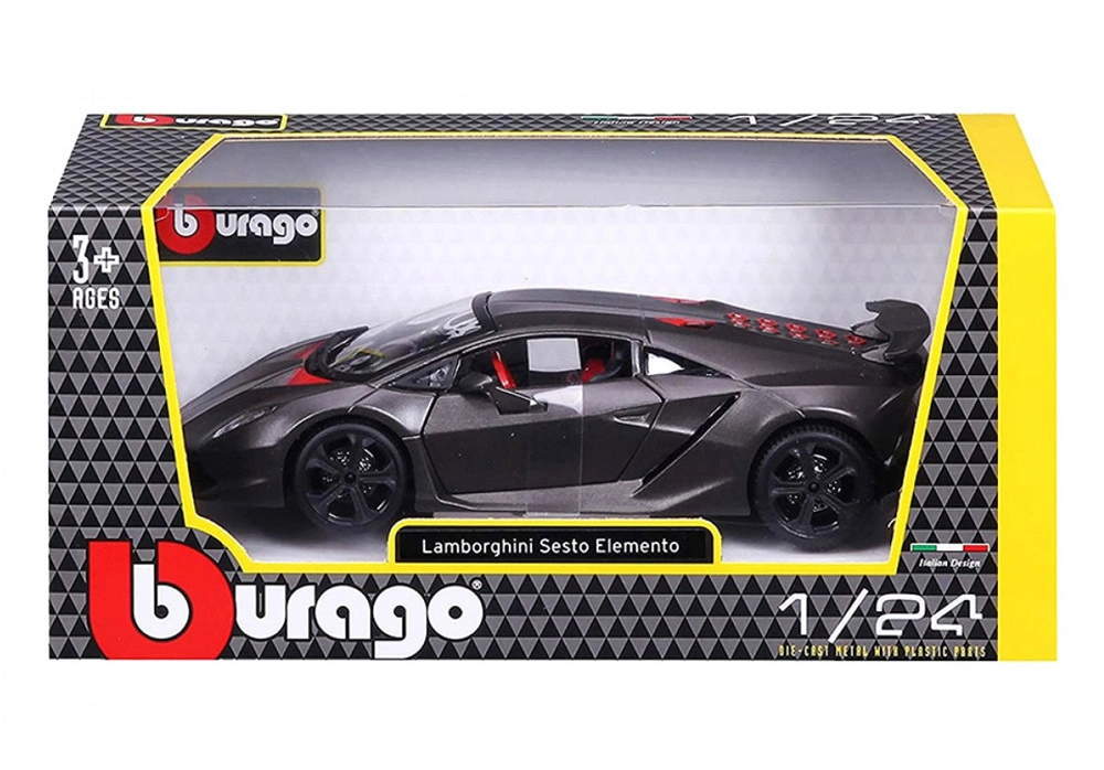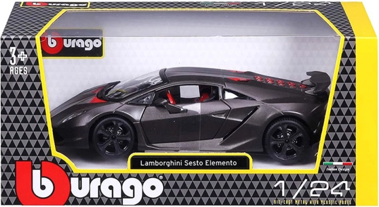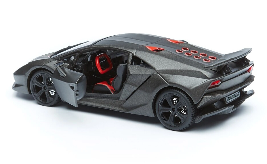 Modelul Bburago 1:24 redă fidel liniile agresive ale supersportului LAMBORGHINI Reventón în elegantul gri metalizat. Datorită ușilor tip foarfecă care se deschid și interiorului elaborat, se evidențiază ca decor stilat pentru vitrină, dar și ca jucărie rezistentă pentru micii pasionați auto.