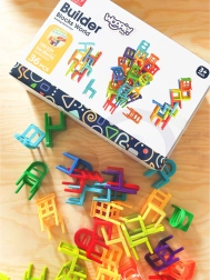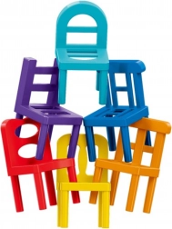 Scaune Echilibrate este un joc care dezvoltă gândirea logică și concentrarea. Este destinat copiilor de la 3 ani și aduce bucurie nu doar lor, ci și adulților. Jocul constă în așezarea scaunelor unul pe altul fără a lăsa să se prăbușească.