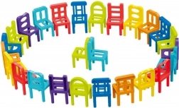 Permite construirea diverselor structuri din scaune colorate și dezvoltă creativitatea.