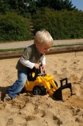 Încărcător pentru copii Lena în varianta negru-galben din plastic de înaltă calitate, care respectă normele europene. Echipat cu un braț mobil cu cupă de încărcare, oferind o distracție excelentă pentru copii.