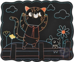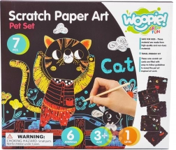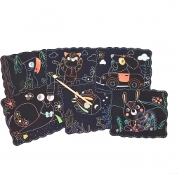 În pachet găsești 6 cartonașe de zgâriat cu animăluțe – pisică, câine, melc, iepuraș, peștișor și papagal – și un stilus din lemn. Datorită ambalajului practic cu închidere, setul poate fi luat cu ușurință în mașină, la restaurant sau în vacanță. Activitatea susține motricitatea fină, răbdarea și creativitatea.