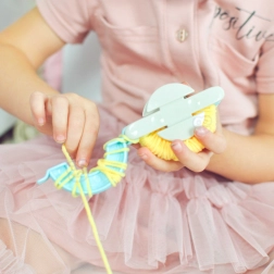 Setul conține un instrument special pentru realizarea pomponilor, care asigură o creare rapidă și simplă.