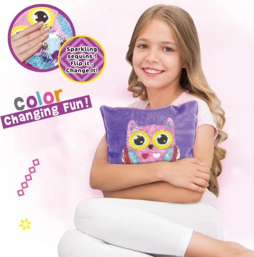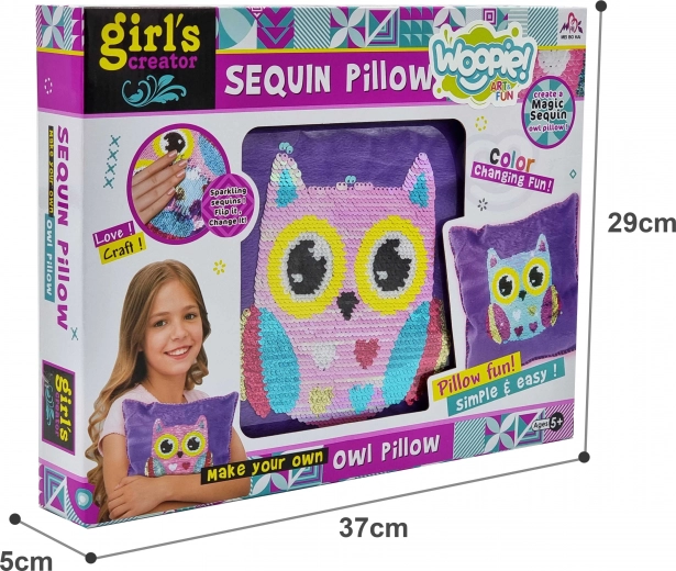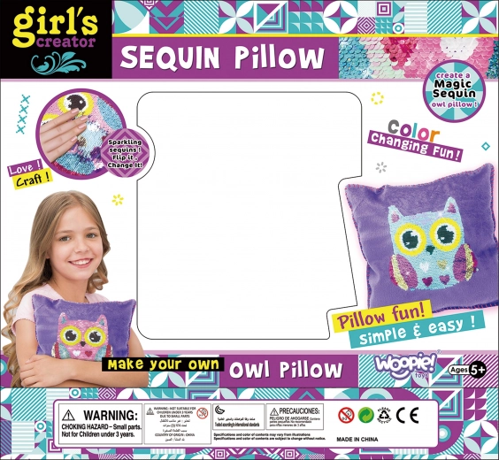 Perna cu paiete în formă de bufniță de la brandul WOOPIE este unealta ideală pentru micii designeri de modă. Cu acest set creativ, copiii se vor cufunda în lumea modei și își vor dezvolta abilitățile creative. Cusutul simplu poate fi realizat de oricine, iar perna are o proprietate unică - la atingere își schimbă culoarea.