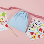 Setul este ideal pentru copiii de la 4 ani care iubesc creația și decorarea. Săculețul textil ușor, cu șnur, poate fi decorat cu litere, cifre și motive vesele cu flori sau animăluțe. Datorită pașilor simpli, copiii își creează ușor un săculeț original pentru mărunțișuri pentru grădiniță, activități sau ca săculeț cadou.