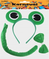 Transformă-te în câteva clipe într-o broscuță adorabilă! Acest set de carnaval pentru copii include o bentiță cu urechiușe și o fundiță pentru gât, datorită cărora creezi un costum rapid și de efect pentru bal mascat, petreceri pentru copii și serbări școlare. Potrivit de la 3 ani.