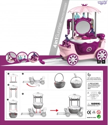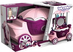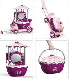 Această toaletă roz-mov pentru copii se pliază ușor într-un troller practic cu mâner extensibil și roți – ideală acasă și în călătorii. Cei mici își pot deschide propriul studio portabil de make-up, pot pieptăna, machia și îngriji „clienții” după propria imaginație.