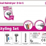 - - Setul complet include: uscător de jucărie, atașamente, perie, pieptene pentru descurcare etc.
