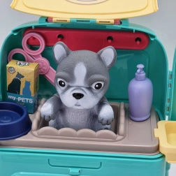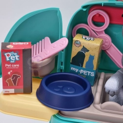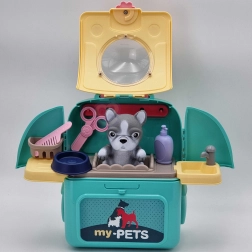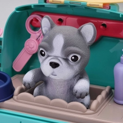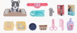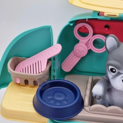 Include o figurină de câine, pieptene, foarfece, coș pentru accesorii și altele.