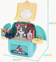 Prezentând salonul de frumusețe portabil pentru copii de la Woopie, care oferă copilului dumneavoastră ore întregi de distracție și interacțiune cu animalul său de companie. Design compact: Permite transportul ușor oriunde, fie pe terenul de joacă sau la grădiniță. Rucsacul are un mâner practic și închidere specială pentru siguranța maximă a jucăriei câinelui.