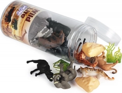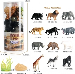 - Set complet: 12 figurine animale sălbatice + 2 plante + 2 roci (în total 16 piese)