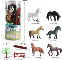 Descoperă un set distractiv de figurine de la brandul Woopie, care va încânta orice mic iubitor de animale. Înăuntru găsești 6 cai realistici, 2 copăcei, 6 părți de gard și 2 bușteni de lemn. Figurinele sunt realizate cu detalii fine, oferă valoare educativă și susțin imaginația și creativitatea în timpul jocului.