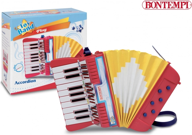 Acordeonul pentru copii BONTEMPI este instrumentul muzical ideal pentru micii muzicieni. Datorită designului compact, construcției robuste și controlului intuitiv, copiii își însușesc ușor bazele cântatului și ritmului. Curelele din plastic rezistent asigură o prindere stabilă și siguranță în timpul cântatului.