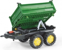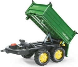 Remorca Rolly Toys este o remorcă stabilă cu două axe, basculabilă pe trei părți. Această remorcă verde este echipată cu roți robuste, ceea ce permite transportul ușor al încărcăturii. Este compatibilă cu orice vehicul Rolly Toys, cu excepția modelelor rollyKids și RollyDumperKid.