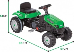 Acest tractor verde cu pedale este jucăria ideală pentru a începe aventura cu vehiculele cu pedale. Produsul este realizat din materiale de cea mai înaltă calitate, care sunt prietenoase cu mediul și complet sigure pentru sănătatea copilului. Tractorul cu pedale este cadoul perfect pentru orice copil. Dispune de un sistem patentat de direcție cu volan, care simplifică mersul chiar și pentru cei mai mici utilizatori.