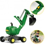 RollyDigger JOHN DEERE este un excavator ride-on pentru copii, de calitate, cu braț funcțional, care permite încărcarea nisipului, pietricelelor și pământului și mutarea lor cu ușurință. Datorită scaunului și bazei rotative la 360°, copiii pot lucra confortabil în toate direcțiile. Blocarea automată a brațului după încărcare crește siguranța și oferă o experiență de joc realistă.