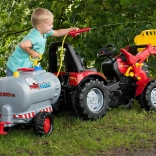 Remorca-cisternă Rolly Toys oferă copiilor posibilitatea de a umple rezervoarele cu apă și de a uda sau curăța grădina și aleea drumului cu ajutorul pulverizatorului și a pompei manuale. Cu o capacitate de 30 litri, oferă suficientă apă pentru ore întregi de distracție.