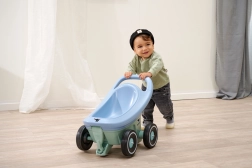 Prin mișcare, împingere și manevrarea căruciorului, întărește mușchii și îmbunătățește abilitățile manuale.