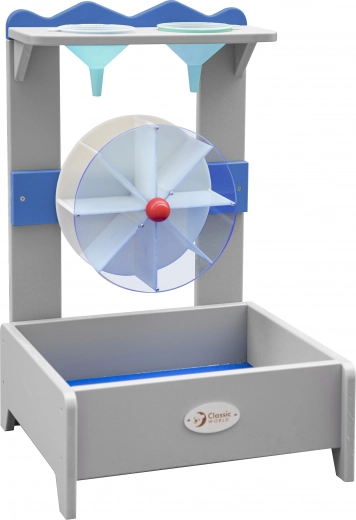 Descoperă farmecul fizicii jucăușe cu moara de apă pentru copii CLASSIC WORLD EDU. Două pâlnii superioare permit schimbarea direcției curgerii și astfel a sensului de rotație al roții de apă – în sensul acelor de ceasornic sau invers. Jocul dezvoltă în mod natural percepția senzorială, gândirea logică și încurajează experimentarea independentă.