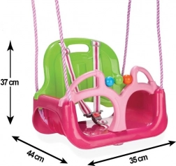 Leagănul roz WOOPIE 3 în 1 este conceput pentru copii de la 12 luni și se adaptează vârstei și abilităților lor. Spătarul și bara frontală ușor detașabile permit trecerea rapidă de la șezutul sigur pentru bebeluși la un șezut pentru copii mai mari. Plasticele rezistente și netede sunt plăcute la atingere, se curăță ușor și rezistă utilizării în exterior.