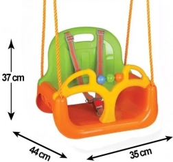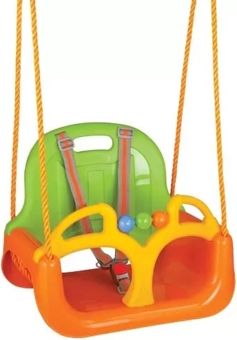 Leagănul 3‑în‑1 este o alegere excelentă pentru părinții care doresc o soluție sigură și de durată pentru distracție atât în grădină, cât și în interior. Datorită sistemului modular, spătarul și bara frontală pentru picioare se pot detașa ușor, astfel încât scăunelul se adaptează vârstei și abilităților copilului. Centurile integrate țin micul pasager ferm și confortabil, iar materialele plastice robuste cu margini netede asigură siguranță și curățare facilă.