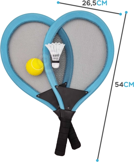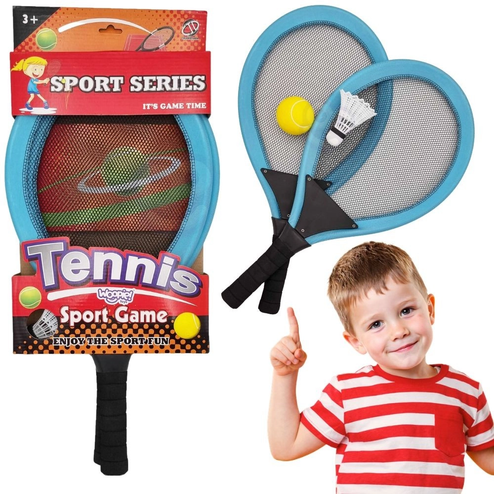 Setul WOOPIE ușor și distractiv pentru micii și marii pasionați de mișcare. Două rachete mari cu plasă elastică, o mingiuță galbenă din spumă și un fluturaș din plastic susțin jocul activ în aer liber, dezvoltarea motricității și a coordonării. Datorită prizei confortabile pentru mâinile copiilor și capului mărit al rachetelor, nimerirea este ușoară, iar jocul devine natural distractiv.