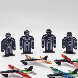 Setul include 4 ținte negre cu punctaj. Construiește-ți propriul traseu de tragere, îmbunătățește precizia și organizează competiții captivante în familie.