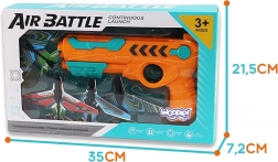 Cu acest pistol lansator WOOPIE este suficient să fixezi avionul, să-l glisezi pe șină până la „clicul” audibil, să tragi de glisor și să apeși pe trăgaci – avionul se va înălța elegant și va ajunge până la 8 metri. Jocul este complet fără baterii, astfel încât copiii se pot bucura de el oriunde: în cameră, în grădină sau în excursii.