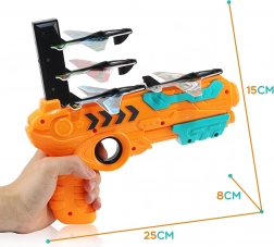 Pentru și mai multă distracție poți lansa până la trei avioane în același timp. Avioanele moi din spumă zboară stabil și în siguranță, cu o rază de până la 8 metri.
