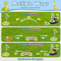 Descoperiți distracția de familie plină de suspans cu WOOPIE SNAKE GOLF! Copiii eliberează mingea din turn, aceasta coboară pe pistă la start, iar sarcina este să țintească precis, să aleagă inteligent traiectoria și să ocolească obstacolele, pentru ca mingea să ajungă în gaura cu steag. O introducere ideală în lumea golfului, care îi învață într-un mod plăcut răbdarea și strategia.